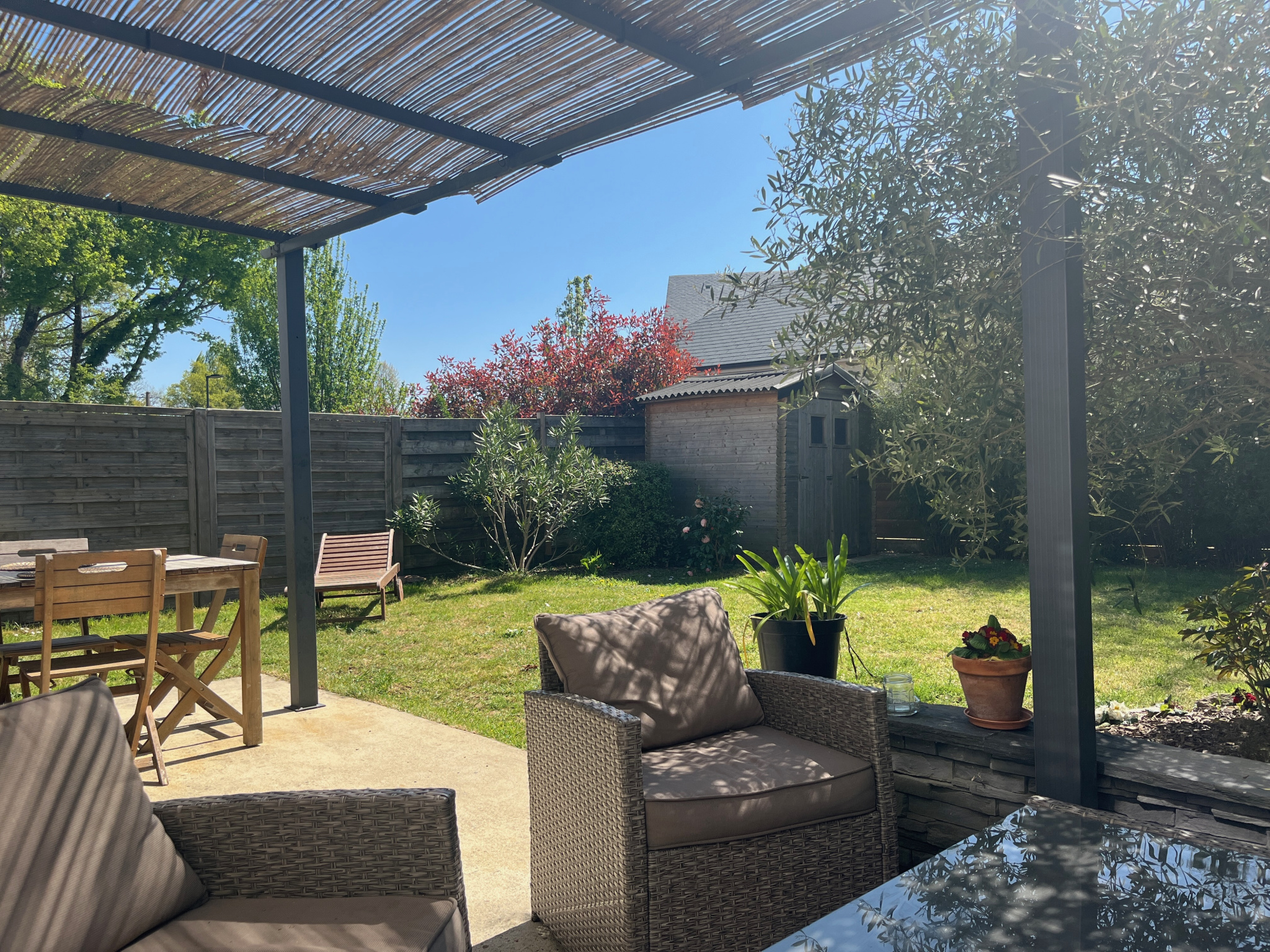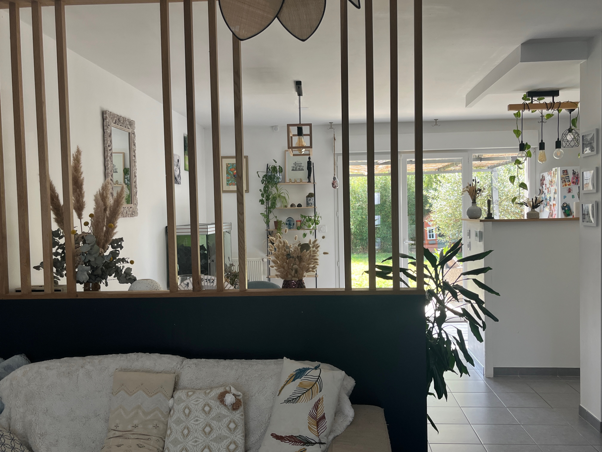 ? Lumineuse avec cuisine ouverte donnant sur son jardin.