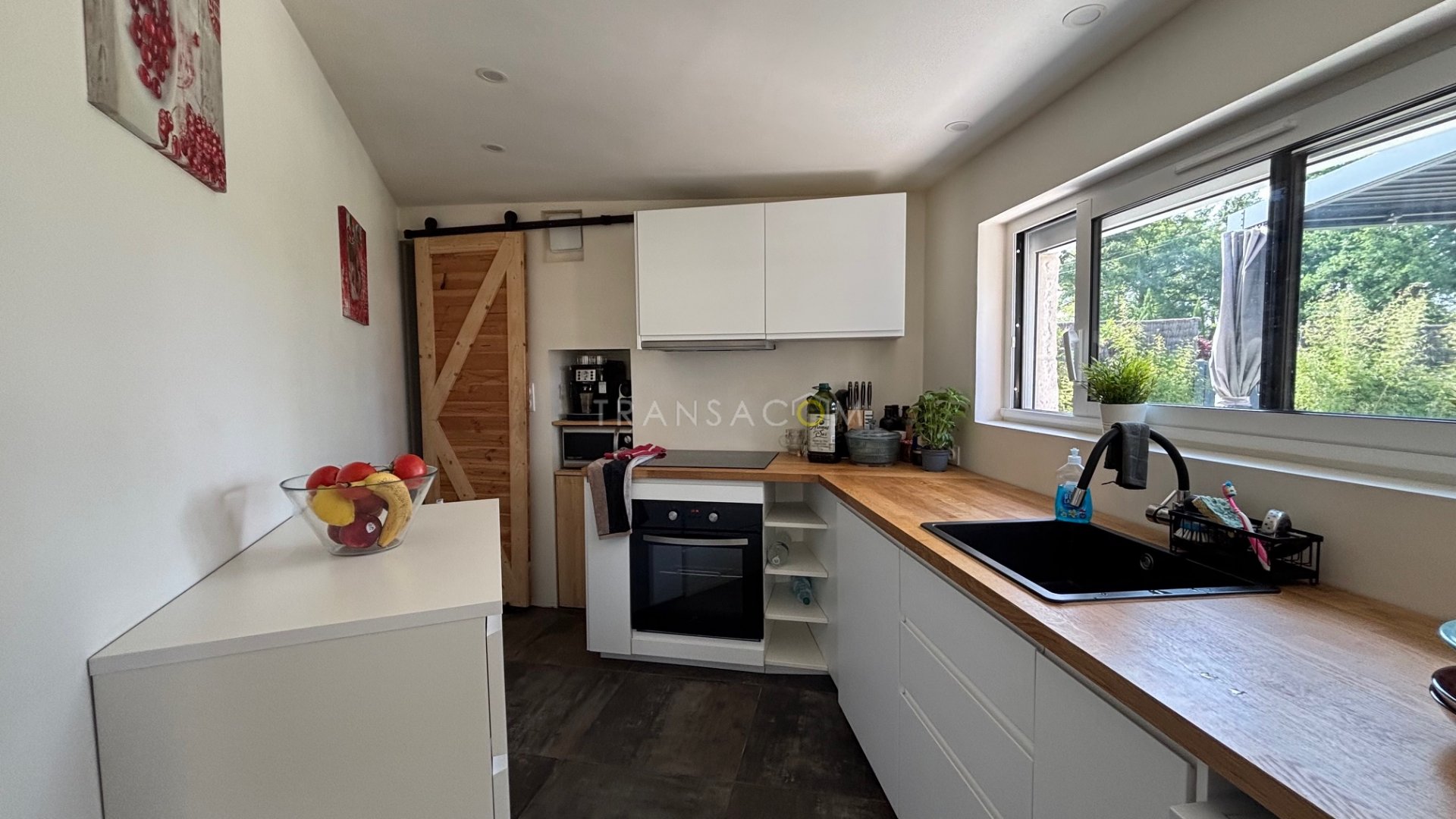 ? Lumineuse avec cuisine ouverte donnant sur son jardin.