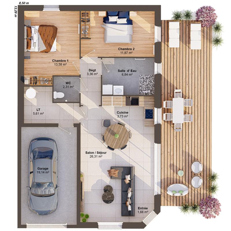 Maison neuve à construire PIVOINE_3CH_84_V1