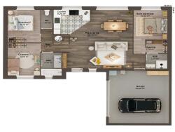 Cette maison de 3 chambres au charme simple et fonctionnel : une pièce de vie chaleureuse, des chambres cosy, une suite parentale avec sa salle d'eau privative et un garage XXL. Un lieu de vie où il fait bon vivre.