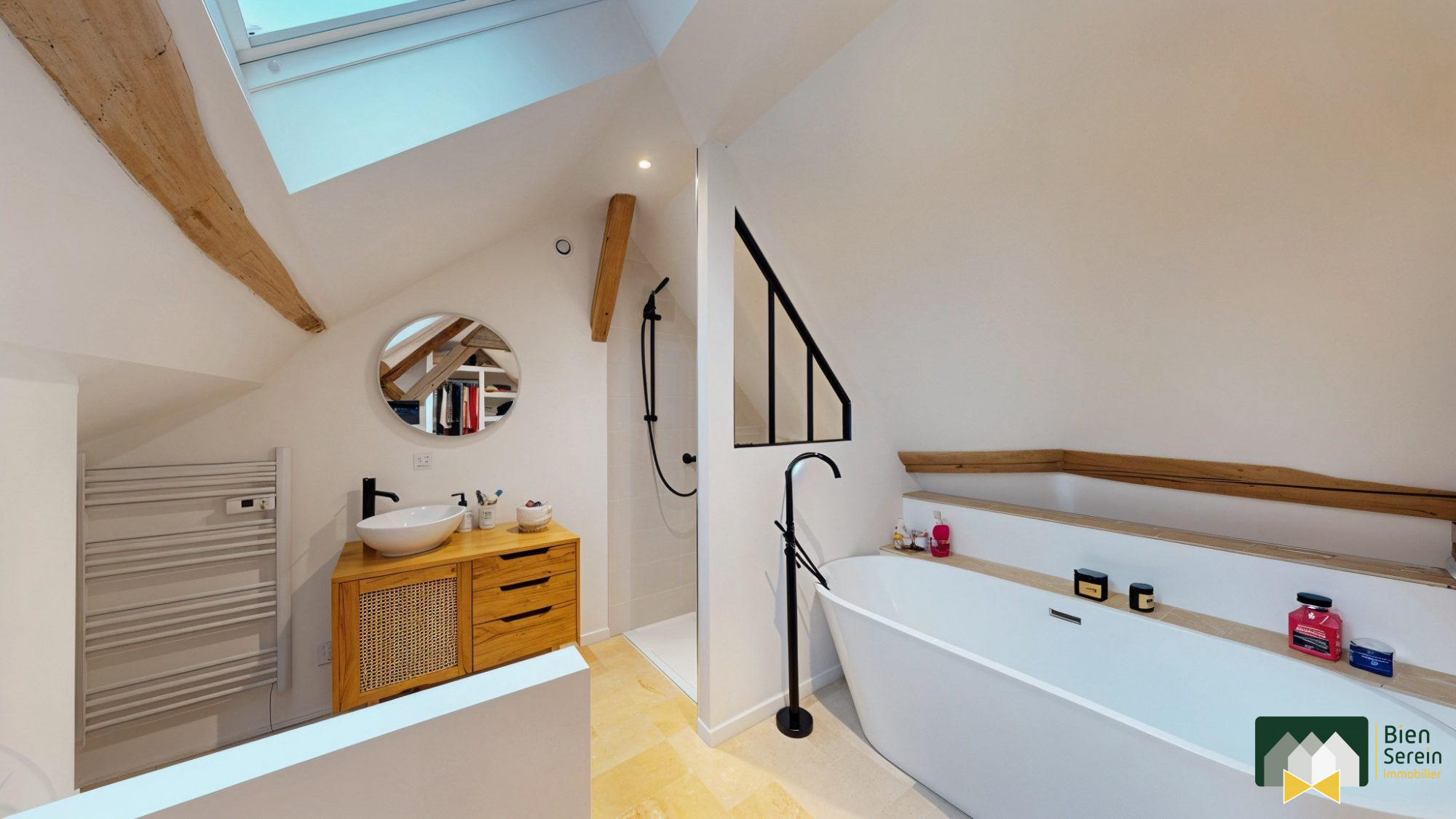 ? Aménagements et équipements de haut niveau : volets roulants motorisés et connectés, système de chauffage par pompe à chaleur, domotique, carrelage grand format.