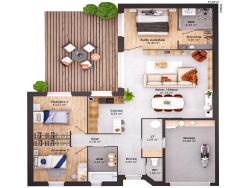 ...Au rez-de-chaussée, une pièce de vie spacieuse et lumineuse de 40 m² vous accueille avec sa...