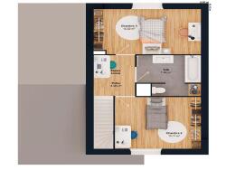 Cette maison de 3 chambres présente une façade compacte, une architecture équilibrée et une surface habitable de 94 m². Elle se distingue par une pièce de vie de 35 m², deux grandes chambres à l'étage, et une suite au rez-de-chaussée avec salle d'eau privative. L'entrée indépendante renforce la fonctionnalité du plan. Un modèle de référence conçu pour répondre à vos attentes.