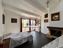 - A l'étage, un palier avec rangements dessert 3 chambres dont une avec placards et une autre grande chambre avec mezzanine et un accès balcon. Une salle d'eau avec un WC complètent ce niveau.
