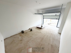 Elle se compose d'une entrée avec placard intégré, d'une grande pièce de vie lumineuse de 56 m2 comprenant une cuisine ouverte, une salle à manger et un salon, le tout donnant sur une terrasse ainsi que sur le jardin, d'une buanderie de 6 m2, d'un WC séparé, et d'un accès direct à un garage de 19 m2.