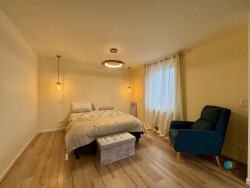 Au premier étage, vous disposerez d'une première chambre avec dressings intégrés (26,52m²), d'une seconde chambre confortable (9,49m²), d'une salle de bains complète (baignoire, douche, à l'italienne et meuble vasque : 9m²) et d'une buanderie avec WC (3,86m²).