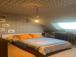 L'étage dispose quant à lui d'une chambre avec placard, d'une salle de bains, de rangement et des 2 greniers..