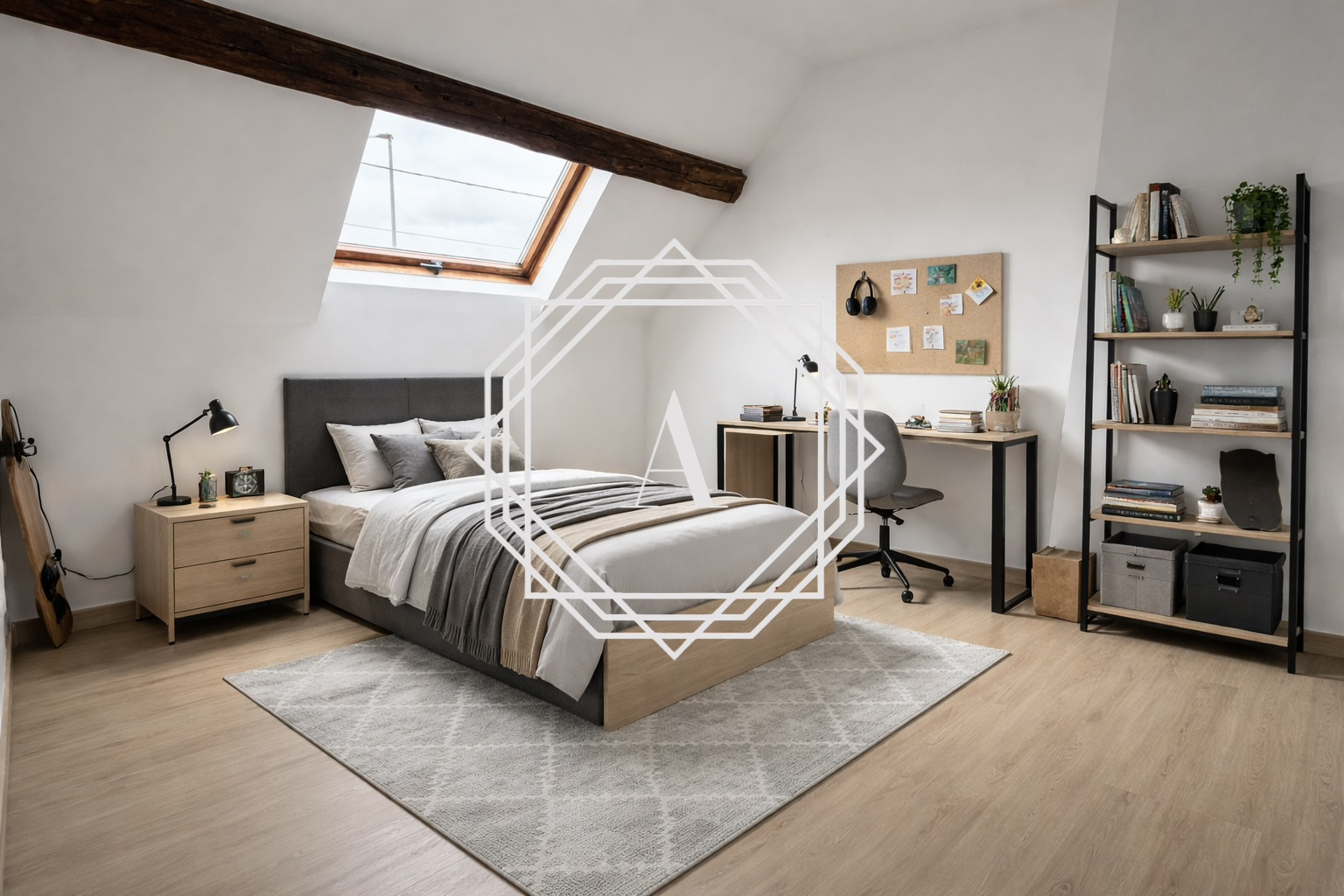 Elle se compose au rez-de-chaussée d'un séjour, d'une salle à manger, d'une cuisine, d'un bureau, d'une salle de bains et de WC ; à l'étage, un palier dessert deux chambres dont une suite parentale !