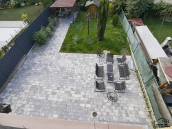 Extérieurs & Annexes Jardin arboré et paysagé Cour pavée Cabane de jardin Pergola en bois