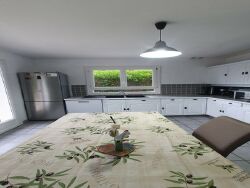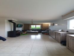 Elle se compose d'un séjour lumineux avec poêle à bois, d'une grande cuisine équipée, de trois chambres spacieuses, d'un bureau, d'une salle de bain et d'une salle d'eau.