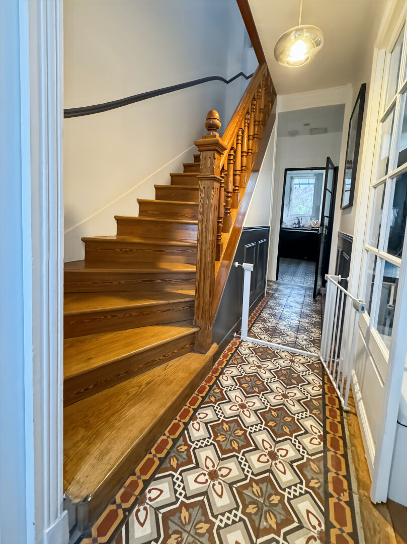 Nous vous proposons une maison à 5 mn de la gare sans les nuisances Elle est édifiée sur un sous sol aménagée en rez de jardin. En RDC surélevé vous trouverez une entrée, WC, un séjour avec une cheminée, une cuisine entièrement équipée donnant sur une terrasse et le jardin., une chambre avec une salle d'eau et placard. A l'étage 4 chambres, WC, SDB, placards. Grenier aménageable . Le tout sur un terrain de 582 m² avec une dépendance Chauffage gaz . IDEALE GRANDE FAMILLE immatriculée : 830 651 691 RSAC Pontoise