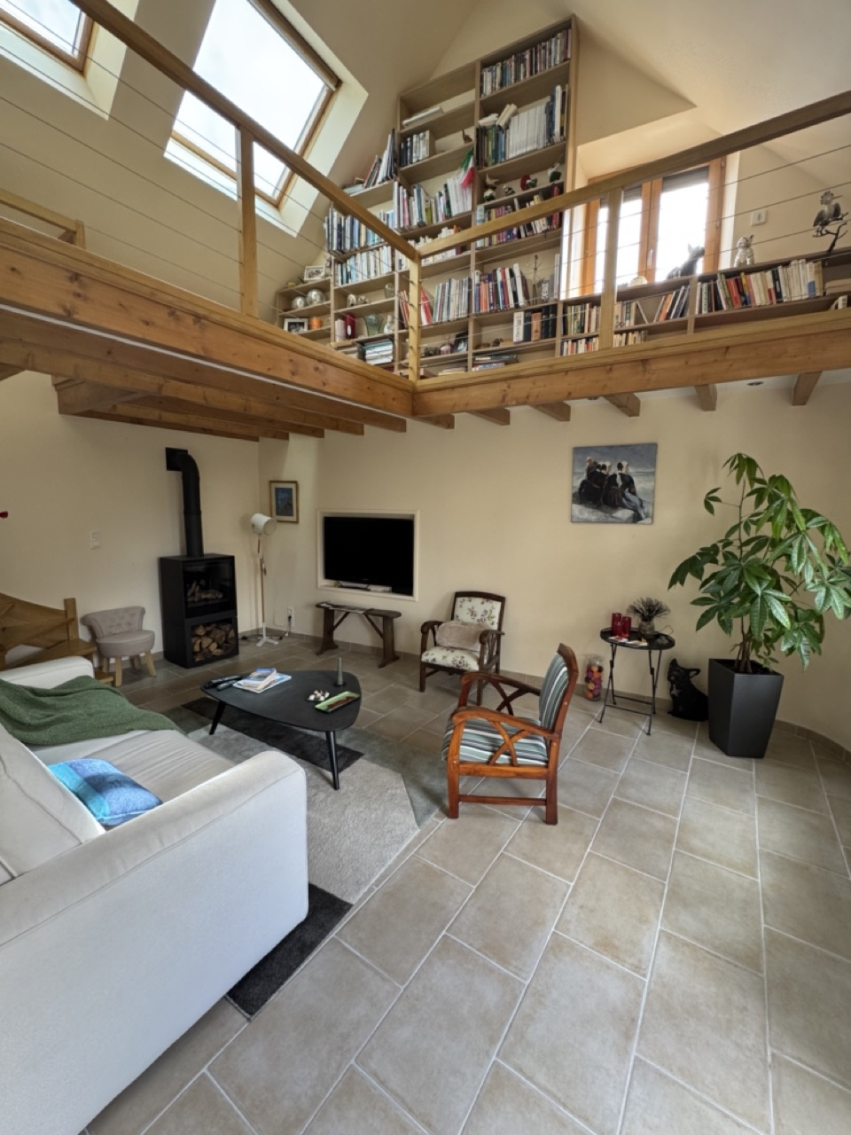 La cuisine, aménagée et équipée, est un véritable espace de convivialité, parfaite pour les repas en famille ou entre amis. Le coin cuisine, ouvert sur le salon, crée une atmosphère chaleureuse et accueillante. La toiture en ardoise et le chauffage individuel assurent une performance énergétique optimale et un confort toute l'année.