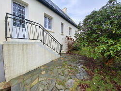 Aux portes de Quimper, sur la commune de Guengat, belle maison néo-bretonne alliant charme, confort et fonctionnalité, implantée dans un environnement calme, agréable et verdoyant. Dès l'entrée, le rez-de-chaussée offre une véritable vie de plain-pied. Hall avec placard, un salon-séjour chaleureux avec cheminée, une cuisine séparée aménagée et équipée, une chambre avec placard, un bureau, une salle de d'eau et un WC indépendant. A l'étage, deux chambres, un dressing, une pièce supplémentaire pouvant faire office de placard, une salle de bains et un WC séparé. Un sous-sol complet divisé en trois parties, une cave, une chaufferie / buanderie, un garage pouvant accueillir facilement deux voitures. Le tout implanté sur un agréable jardin arboré clos.
