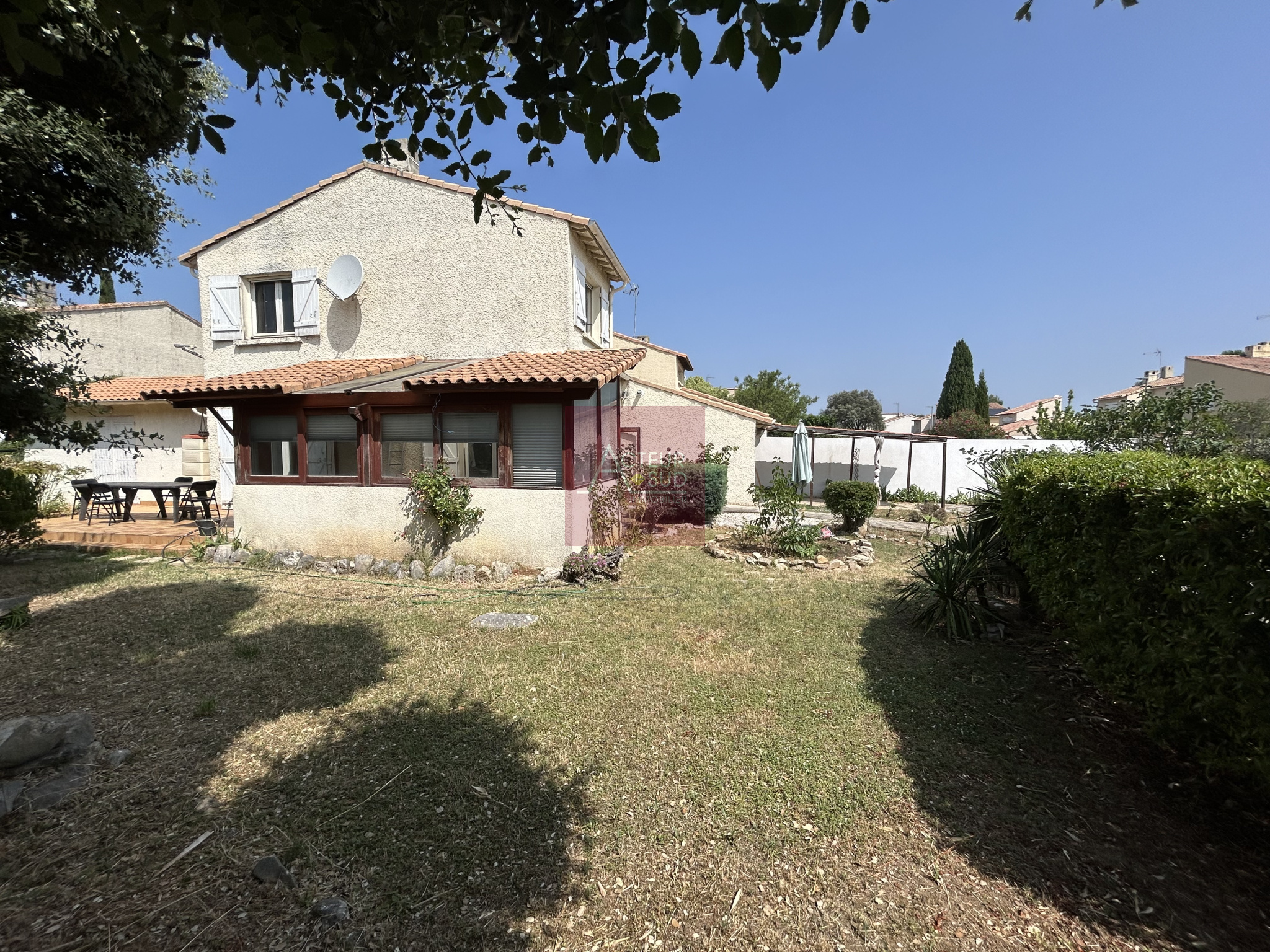 OUVERT INTERAGENCE Laura du réseau WAH vous propose cette maison de 6 pièces sur une parcelle de 112 m2. Située au fond d'une une impasse calme au sein d'un lotissement à Montpellier, secteur Ovalie / Bagatelle, cette maison T6 de 102 m2 (loi Carrez) est idéalement placée, à proximité immédiate des grands axes, commerces, écoles, collège, bus, et du futur arrêt de la ligne 5 du tramway. Cette Maison T6 mitoyenne d'un seul côté est très bien agencée. Au rez-de-chaussée vous trouverez une entrée avec rangement / buanderie, un vaste séjour lumineux de 32 m2, une cuisine ouverte, aménagée et équipée, une grande chambre de 14 m2 donnant sur le jardin et un WC séparé. À l'étage, vous disposerez de 3 chambres dont une de 15 m2, un bureau, une salle de bain et un WC séparé. LES ANNEXES : Un jardin exposé EST, avec une grande terrasse dont une partie couverte et ombragée ainsi que deux places de parking privatives extérieures. LES POINTS ++ : Climatisation réversible gainable dans toute la maison. Double vitrage PVC, terrain clos et faibles charges de copropriété. Résidence soumise au régime de la copropriété comprenant 34 lots d'habitation.Les charges annuelles de copropriété s'élèvent à 519 EUR.Aucune procédure en cours. Pour tous renseignements complémentaires ou pour visiter ce bien, contactez votre agent commercial Laura MISSEREY au O778888065 (RSAC de Montpellier numéro 885 255 539). Selon l''article L.561.5 du Code Monétaire et Financier, pour l'organisation de la visite, la présentation d'une pièce d'identité vous sera demandée. Retrouvez toutes nos annonces sur notre site : www.wahuman.com Les risques auxquels ce bien est exposé sont disponibles sur le site : www.georisques.gouv.fr - Annonce rédigée et publiée par un Agent Mandataire -