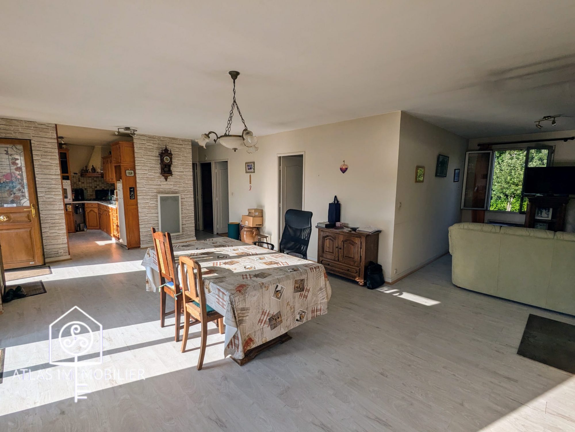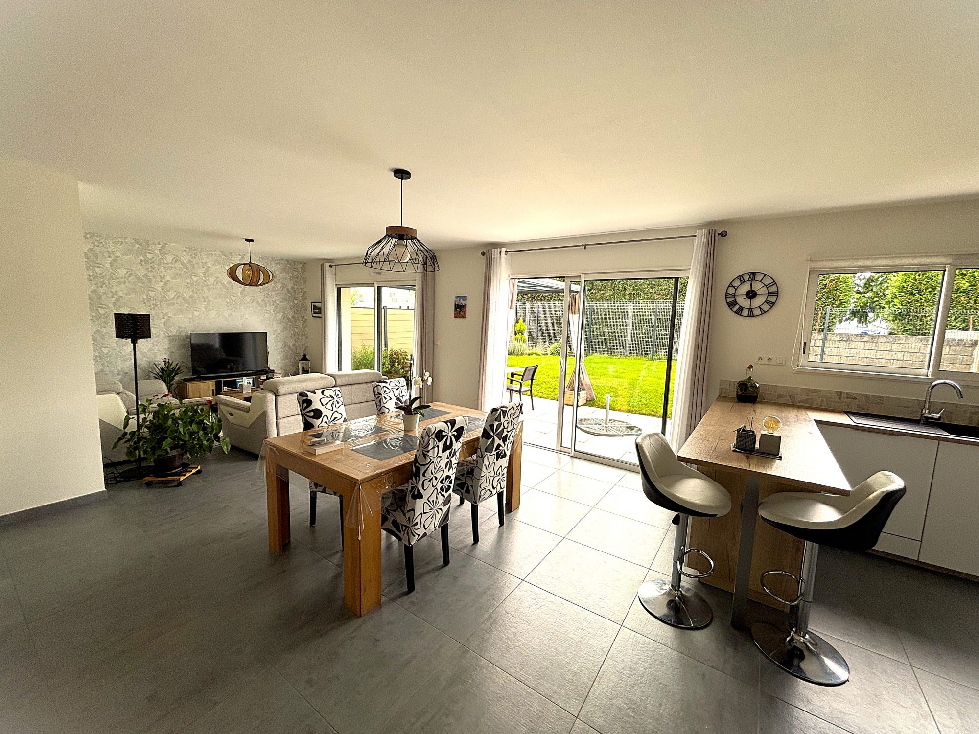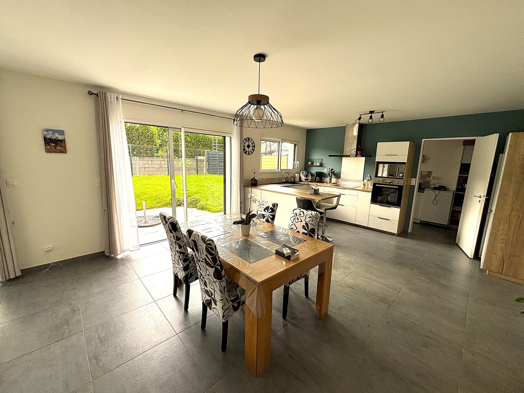 ? Lumineuse avec cuisine ouverte donnant sur son jardin.