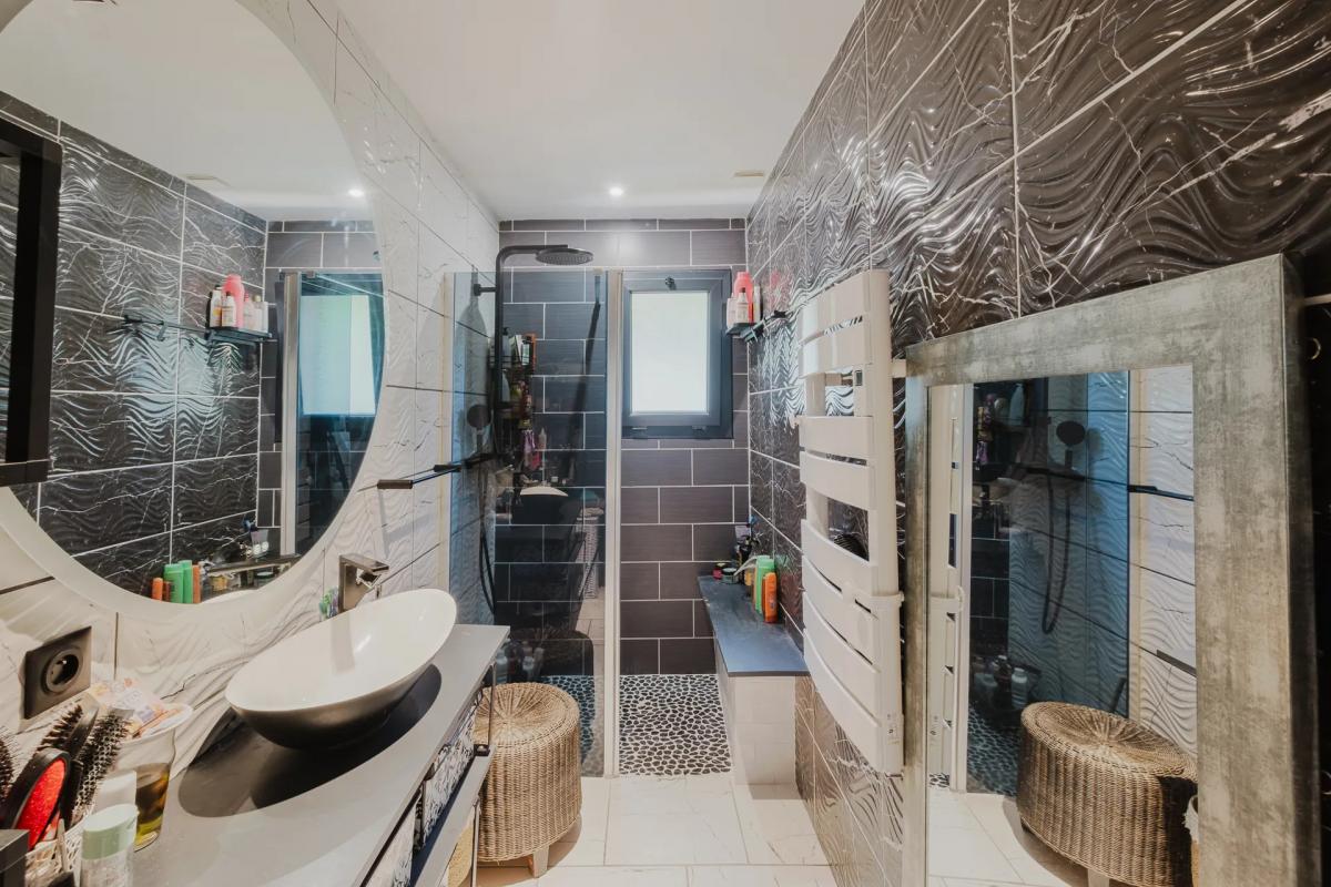 ? Aménagements et équipements de haut niveau : volets roulants motorisés et connectés, système de chauffage par pompe à chaleur, domotique, carrelage grand format.