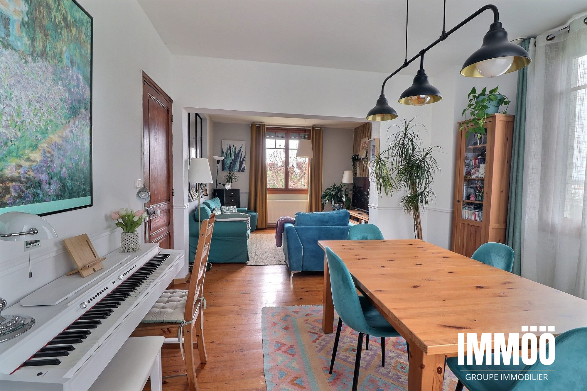 ...Maison comprend une entrée, un séjour, un salon avec insert, une cuisine avec coin repas, un wc...