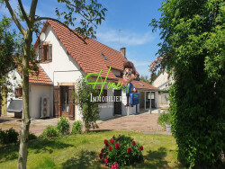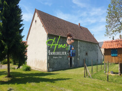L'ensemble est composé d'un double-garage de 60m² offrant quatre places de stationnement couvert pour vos véhicules, d'une grange de 120m² dont une partie transformée en bar convivial, et de deux autres pièces, plus un grand volume à aménager à l'étage. L'intérieur de la maison est en bon état.