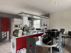 Développant environ 150 m² de surface habitable, elle s'ouvre au rez-de-chaussée sur une entrée spacieuse avec rangements, menant à un séjour lumineux d'environ 30 m² agrémenté d'une cheminée. La cuisine ouverte, conviviale et fonctionnelle, propose un bel espace repas d'environ 26 m². Dans le prolongement, une véranda de 18 m² constitue une véritable pièce de vie supplémentaire, baignée de lumière et ouverte sur le jardin.