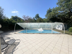 Sanguinet, coeur de village et lisière de forêt, superbe contemporaine de 2004 composée d'une cuisine américaine ouverte sur belle pièce de vie traversante et lumineuse de 50m2 environ. Côté nuit, deux chambres, un bureau, une salle de bains avec douche et baignoire et un dressing. Un grand garage communiquant permet de nombreux aménagements, avec au dessus une belle mezzanine avec wc et point d'eau pouvant accueillir plusieurs couchages. La pièce de vie offre une belle vue sans vis-à-vis sur le jardin et la piscine, l'environnement est calme et paisible. A l'extérieur, un carport, un abris de jardin, un abris bois ainsi qu'un espace cuisine d'été. Commerces, commodités, écoles et lac à pieds. Emplacement idéal et rare sur le secteur.