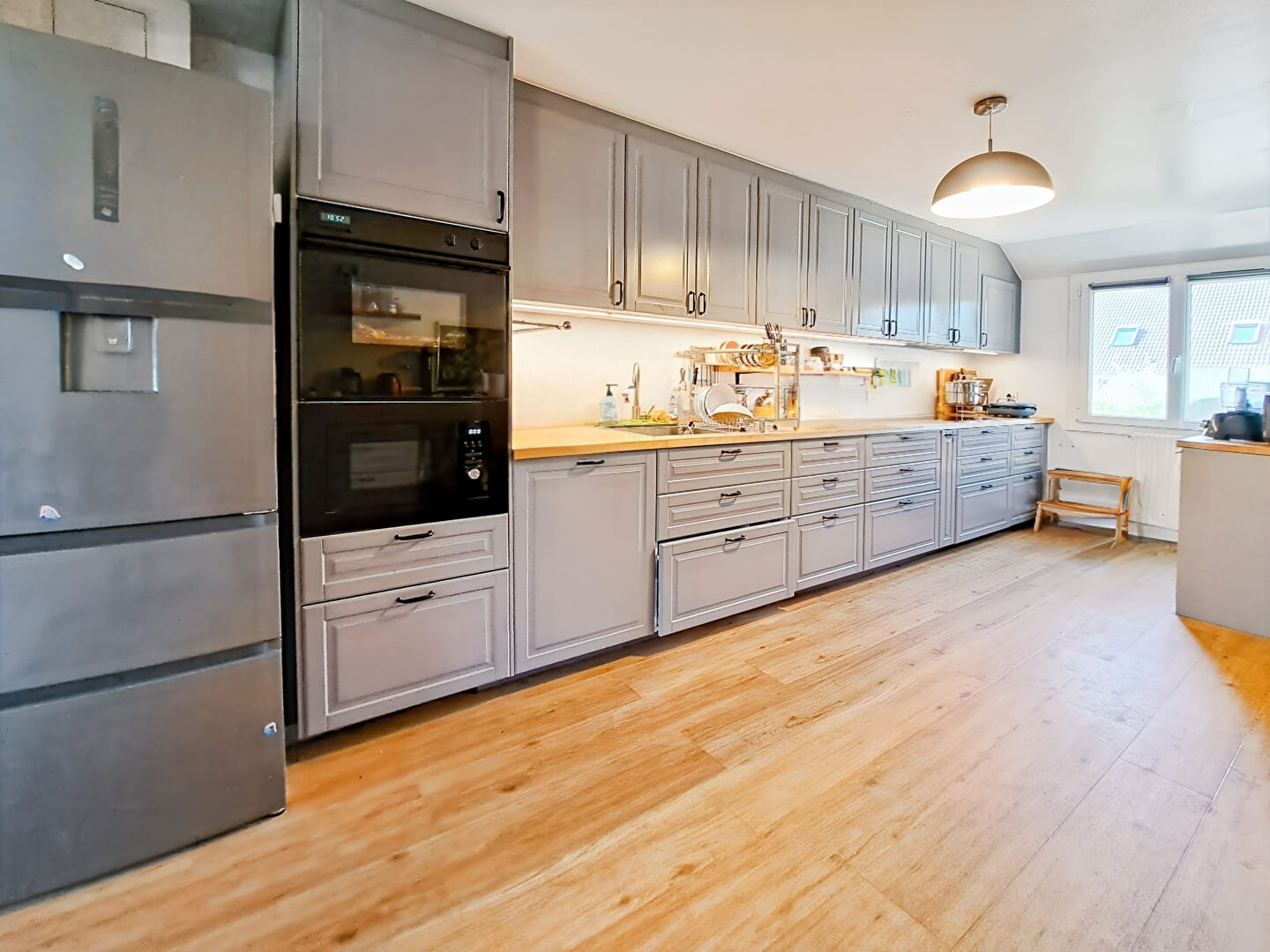 Dès l'entrée, vous découvrirez une pièce de vie spacieuse et lumineuse, pensée pour les moments de partage. La cuisine ouverte s'intègre harmonieusement à la salle à manger, et le poêle à bois récent aux nouvelles normes (bi combustion) apporte une atmosphère chaleureuse lors des soirées d'hiver. Une pompe à chaleur performante et un chauffage connecté viennent compléter le confort, pour une maison agréable à vivre et économe en énergie.