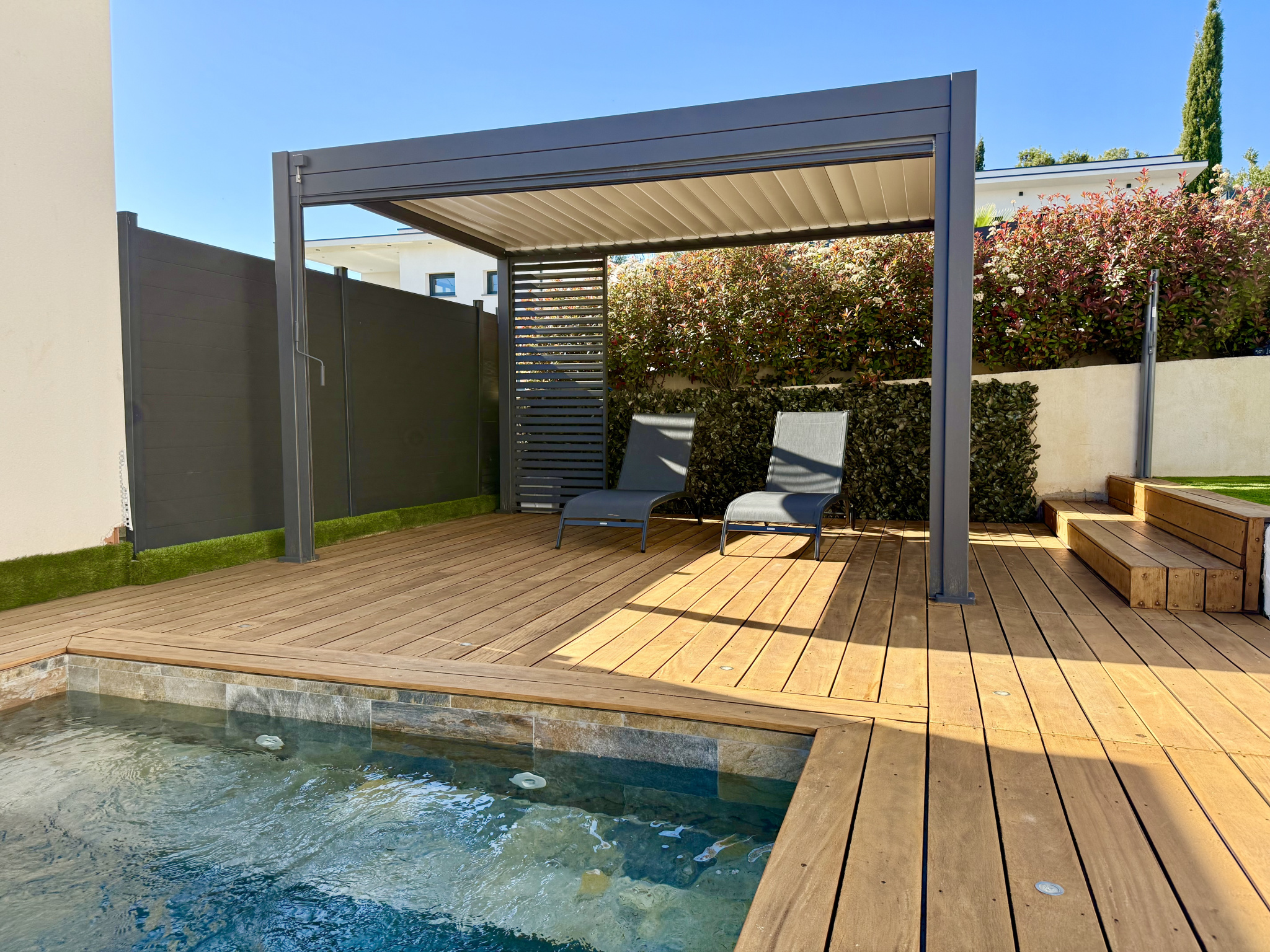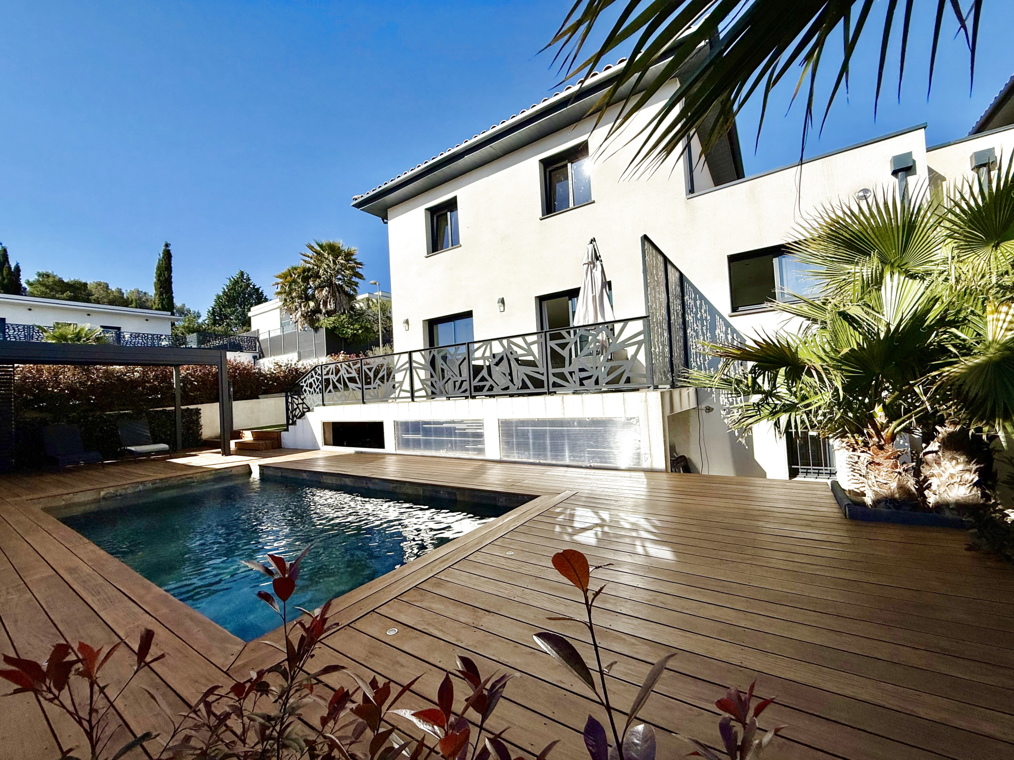 LES ATOUTS : - piscine au sel contenance 60 m3 - 10x4 et 1,5 de profondeur, - climatisation réversible dans chaque pièce, - grand garage chauffé, - buanderie, - portail automatisé et visiophone, - chauffe-eau thermodynamique, - adoucisseur d'eau, - terrasses, - cabanon, - plusieurs places de stationnement, - résidence calme à proximité des commerces et des établissements scolaires.