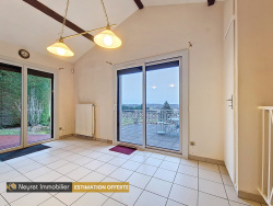 Maison 137 m2 avec piscine Communay- 3 Chambres Neyret Immobilier Communay vous présente; À 20 min de Lyon, maison individuelle de 137m2 avec double garage au calme. A l'entrée un toilette vestiaire qui ouvre sur le Séjour cathédral très lumineux avec salle a manger, cuisine équipée ouvrable sur séjour qui donne accés à une veranda de 15m2 coté est, espace bureau ou chambre au rez-de-chaussée qui offre une belle terrasse coté sud avec magnifique vue. À l'étage : 3 chambres dont une avec balcon et vue dégagée sur les Alpes, avec salle de bain privative. Une deuxième salle d'eau et un wc indépendant. Terrain de 841 m2 avec piscine, pergola et terrasse sans vis-à-vis avec vue sur les alpes. Volets roulants électriques centralisés, alarme, fibre, garage double. Gare de Sérézin à 5 min en voiture qui dessert Lyon en 20 min. Accès rapide A7. Pour toute demande de visite, contactez Charlotte Forêt Neyret Immobilier Communay 04 72 30 01 70