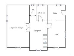 Le 1er étage est constitué d'un palier, un grand séjour lumineux, une cuisine avec accès à la terrasse, une salle à manger, une salle de bains & un WC.