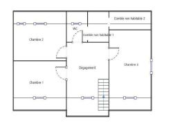 Le 2ème étage est constitué d'un dégagement, de trois chambres & un WC.