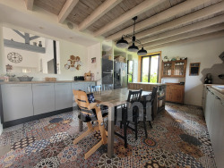 La cuisine spacieuse, entièrement aménagée et équipée, s'ouvre sur l'extérieur et invite à profiter des repas en terrasse face à la verdure.