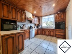 - au RDC : Entrée avec placards, salon / séjour avec poêle à granulés, cuisine aménagée et équipée (induction, hotte, four), chambre avec placard, salle d'eau avec wc, bureau, chaufferie / lingerie ; - Au 1er étage : Mezzanine, 4 chambres, salle d'eau, wc ; - Grenier sur le dessus. Cette maison est chauffée au fioul. Les huisseries sont en PVC double vitrage avec des volets roulants électriques. Vous disposerez également d'une terrasse, d'une cour, d'un atelier, d'un carport ainsi que d'un terrain de près de 600 m² !