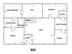 La maison principale est composée au rez-de-chaussée comme suit : une entrée, un superbe séjour avec cheminée en pierre et poutres apparentes, une cuisine équipée, une arrière cuisine, une chambre, un bureau, une salle d'eau, un wc. Un local chauffe-eau, un local chaudière, une cave et un fournil complète ce niveau.