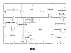 La maison principale est composée au rez-de-chaussée comme suit : une entrée, un superbe séjour avec cheminée en pierre et poutres apparentes, une cuisine équipée, une arrière cuisine, une chambre, un bureau, une salle d'eau, un wc. Un local chauffe-eau, un local chaudière, une cave et un fournil complète ce niveau. Au premier étage, un palier, quatre chambres, une salle de bains avec wc et un grand grenier aménageable.
