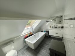 A l'étage, dégagement desservant 1 bureau/dressing, 3 chambres donc une suite parentale avec salle d'eau et mezzanine, salle de bain avec WC.