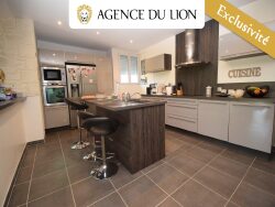 Dans un secteur calme et verdoyant, maison d'habitation tres bien entretenue comprenant: vaste entrée avec placards, séjour de 60m² lumineux ouvert sur cuisine équipée et aménagée, dégagement desservant trois chambres dont une suite parentale avec dressing et salle d'eau, salle de bains, buanderie, à l'étage: grande pièce de 40m² aménagée en salon et salle de sport.