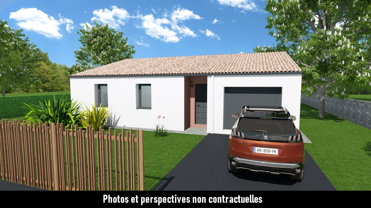 ...Pièce de vie de 42m² avec cuisine ouverte, 3 chambres et un garage de 15m²...