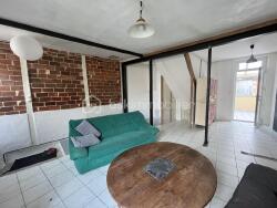 Au rdc une grande pièce de vie lumineuse, un wc et une extension où se trouve l'espace cuisine qui est à créer, et qui donne directement sur un petit jardin avec dépendance.