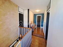 Entrée, grande pièce de vie lumineuse de 56 m² avec poêle à granulés.