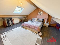 À l'étage, vous trouverez deux chambres confortables ainsi qu'une salle de bain. Un grenier aménagé vient compléter ce bien, parfait pour un bureau, une chambre supplémentaire ou un espace détente selon vos besoins.