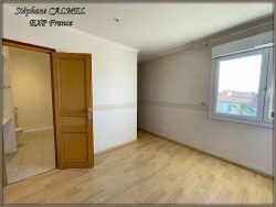 A l'étage, le palier dessert trois chambres, dont une suite parentale avec dressing et salle d'eau privative avec WC, offrant confort et intimité.