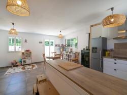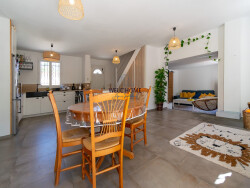 Au rez-de-chaussée, un séjour lumineux de 22 m² vous accueille, prolongé par une cuisine américaine aménagée et équipée, véritable lieu de convivialité. Ce niveau comprend également une salle d'eau avec douche italienne et WC. Possibilité d'aménager une troisième chambre au rez-de-chaussée selon vos besoins.