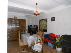 Maison proche d'un bourg avec commerce, divisée en deux parties comprenant 2 F3, possibilité de réaliser une seule grande maison, avec une dépendance et double garage le tout sur un terrain d'environ 500m2 à délimiter par géomètre.