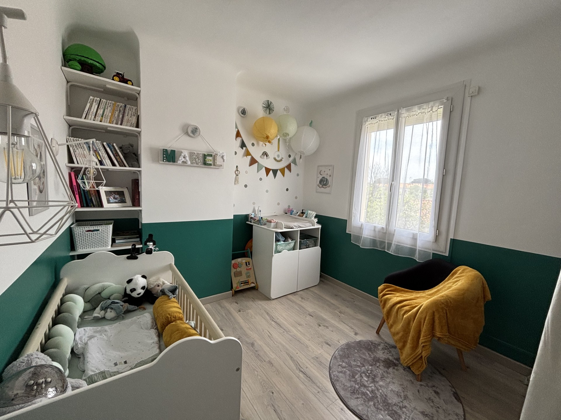 Au coeur de la maison, un patio intime et ensoleillé crée un véritable cocon de sérénité. Parfait pour des moments conviviaux entre le salon et la salle à manger, il devient un espace de détente unique, rare dans ce secteur. À l'étage, nous retrouvons deux chambres avec une vue sur les montagnes qui s'admire du coucher au réveil le matin, une des chambres possède son propre dressing intégré.