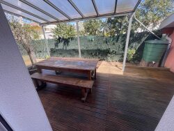 Maison de type T3 dans une petite zone résidentiel d'une surface habitable de 72m². Elle se compose d'un salon cuisine très lumineux d'une surface de 40m², de deux chambres avec placard, d'une salle d'eau,d'un wc indépendant ainsi qu'un garage de 20m² et un carport . A l'exterieur, se trouve une terrasse sur son terrain de 454m². La maison se situe proche de toutes les commodités, cette maison est donc parfaite pour un premier achat immobilier.