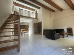 Une mezzanine de 10 m² surplombe l'espace de vie, offrant une belle pièce supplémentaire modulable selon vos besoins (coin bureau, bibliothèque ou chambre d'appoint).