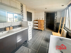 Découvrez cette magnifique maison mitoyenne d'un seul côté, construite en 1970 et entièrement rénovée en 2014. Avec ses 109 m² de surface habitable, cette propriété allie charme ancien et modernité. Au coeur de cette maison, un séjour spacieux de 32 m² baigné de lumière vous accueille. Imaginez-vous profiter des doux rayons du soleil grâce à son exposition sud, offrant une vue apaisante sur la campagne environnante. Les grandes ouvertures en PVC à double vitrage laissent entrer la lumière tout en préservant l'intimité. La cuisine aménagée et équipée, de type coin cuisine, est un véritable espace convivial où préparer vos repas préférés. Les 3 chambres, dont une suite parentale, offrent des espaces de vie confortables et intimes. La salle de bains, moderne et fonctionnelle, complète ce niveau unique. À l'extérieur, une terrasse de 40 m² vous invite à des moments de détente en plein air. Le jardin de 450 m² est un véritable écrin de verdure, parfait pour les amoureux de la nature. Un stationnement intérieur et deux places extérieures complètent ce tableau idyllique. Cette maison, en excellent état intérieur, est éligible à la fibre optique, garantissant un confort moderne. La toiture en fibro-ciment assure une protection durable. À proximité, vous trouverez plusieurs commodités : des écoles maternelles et élémentaires, des collèges, des restaurants, un hôpital, un médecin généraliste, et des commerces de proximité. Les transports en commun sont également accessibles à pied ou en voiture. Ne manquez pas l'opportunité de faire de cette maison votre nouveau foyer. Contactez-nous dès aujourd'hui pour une visite !