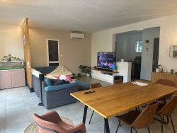 Proche des écoles et des commerces, villa à étage sur terrain clos comprenant en rdc : salon-séjour, cuisine équipée, cellier,une suite parentale avec dressing et salle d'eau. A l'étage : 3 chambres avec placards, salle de bains, wc. Garage, places de parking dans une cour commune, terrasse avec pergola.