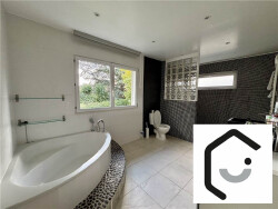 Très lumineuse, elle comprend : au RDC : une entrée avec placard, un double séjour de 40 m² avec une cuisine ouverte spacieuse de 20 m² et un WC. A l'étage, un dégagement desservant trois chambres avec meubles de rangements pour chaque, un espace dressing ou bureau et une grande salle de bains avec baignoire, douche et WC. En complément, une terrasse à l'étage donne sur deux chambres. La maison dispose d'un sous-sol total de 60 m² avec chaufferie et garage. Terrain de 700 m² avec espaces à l'avant et à l'arrière de la maison pour plus de tranquillité.
