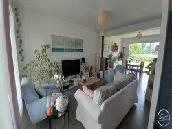 Maison individuelle d'environ 95 m² offrant un salon séjour avec poêle à pellet, cuisine aménagée et équipée, un cellier, WC. A l'étage un palier, 3 chambres dont une avec espace de rangement, une salle de bains et WC séparé.