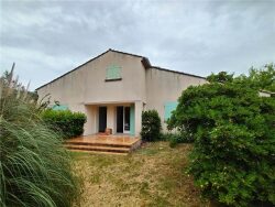 Grande maison T4 de 124 m² de plain-pied dans quartier calme comprenant une cuisine meublée et semi-équipée, un grand salon, une salle d'eau neuve, un WC séparé et trois chambres. Garage avec coin buanderie et jardin clos d'environ 1.000 m². Disponible de suite. Réf. 2217-1.